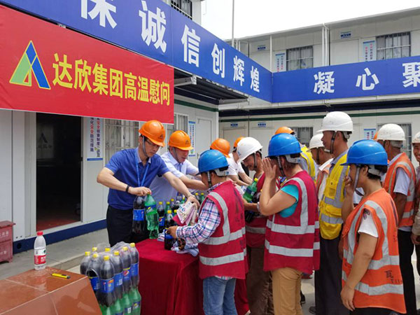 在項目部,集團公司領(lǐng)導(dǎo)將人丹、花露水、雪碧等防暑降溫用品發(fā)放給每一位職工,同時叮囑大家夏季高溫作業(yè)時,注意防暑降溫。另外,員工養(yǎng)成良好的生活衛(wèi)生習(xí)慣,不疲勞上崗、不帶不良情緒上崗,以良好的精神狀態(tài)上好班。