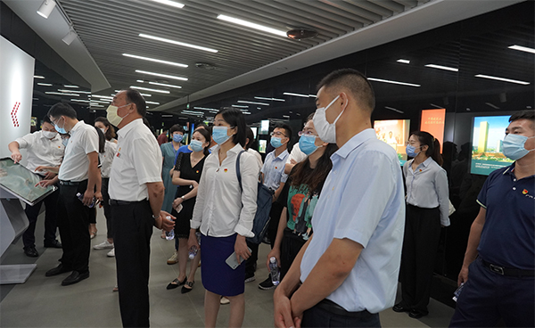 領(lǐng)導(dǎo)們一行來(lái)到企業(yè)展示中心,觀看了集團(tuán)黨建專(zhuān)題片---紅旗鐵軍,詳細(xì)聆聽(tīng)了集團(tuán)黨委開(kāi)展的四項(xiàng)融合、四微黨建、三項(xiàng)目標(biāo)的“四四三”黨建工作法等內(nèi)容,了解了具有達(dá)欣特色的“工地黨旗美如畫(huà)”黨建工作新舉措、新理念。隨后,領(lǐng)導(dǎo)們還參觀了馬和軍勞模創(chuàng)新工作室黨支部,聽(tīng)取了集團(tuán)建筑工地上流動(dòng)黨員立足本職崗位,發(fā)揮帶頭模范作用,提升項(xiàng)目質(zhì)量,助推集團(tuán)高質(zhì)量發(fā)展的情況介紹。