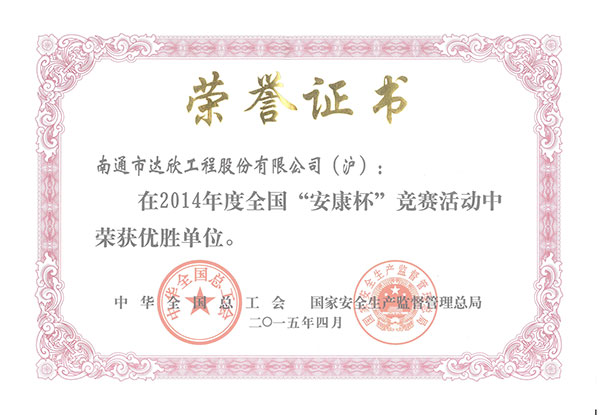 第一工程公司榮獲2014年度全國“安康杯”競賽優(yōu)勝單位稱號